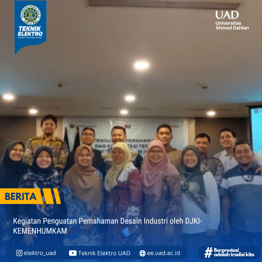 Kegiatan ini turut dihadiri perwakilan dosen-dosen Teknik Elektro Universitas Ahmad Dahlan sebagai peserta kegiatan. Tampak antusias serta respon positif peserta dalam mengikuti seluruh rangkaian kegiatan ditunjukkan dalam bentuk umpan balik seperti diskusi, tanya jawab, hingga konsultasi teknis draft desain industri kepada narasumber serta pendamping.
